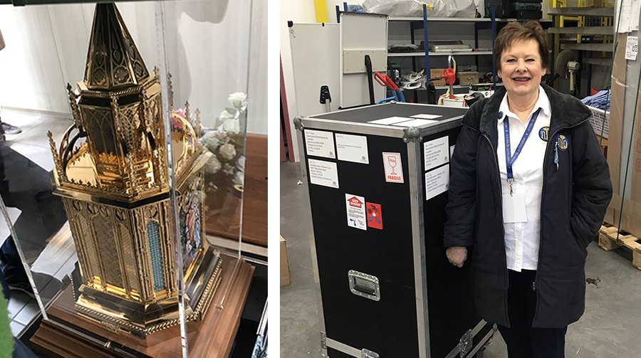 Fr. Jean-Marcel led the Rosary and prayers for a successful maiden voyage to the United States, blessing The Relics, the volunteers, the vehicle and the driver. The vehicle was then loaded with the trunk containing the Relics for the United States.